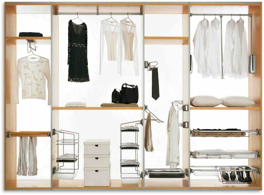 Установленных стандартов внутреннего наполнения шкафа нет, всегда ориентируются на особенности своего быта, количество человек в семье и размеры квартиры.