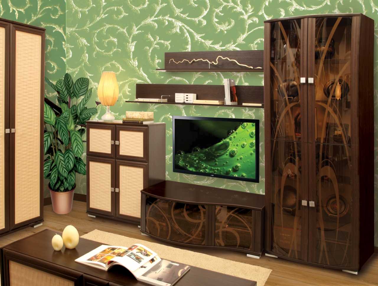 Если помещение имеет скудную площадь и низкую степень освещенности, откажитесь от приобретения темных шкафчиков, визуально делающих маленькую комнат еще более мрачной и узкой. А вот для хорошо освещенной маленькой гостиной можно подобрать средние по насыщенности тона мебели: ольха, орех, бук.