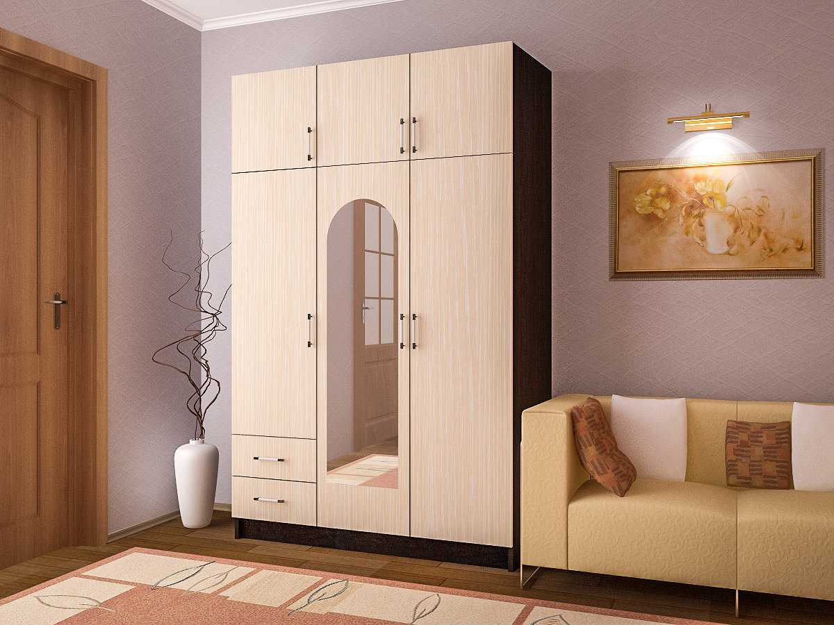 - В квартирах-студиях трехстворчатые шкафы используются с целью зонирования и устанавливаются перпендикулярно стенам.
