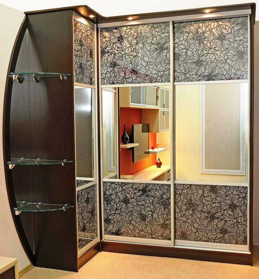 - Шкаф угловой или радиальный — оптимальное решение для размещения в свободном углу небольших жилых комнат (включая помещения, загроможденные другой мебелью).