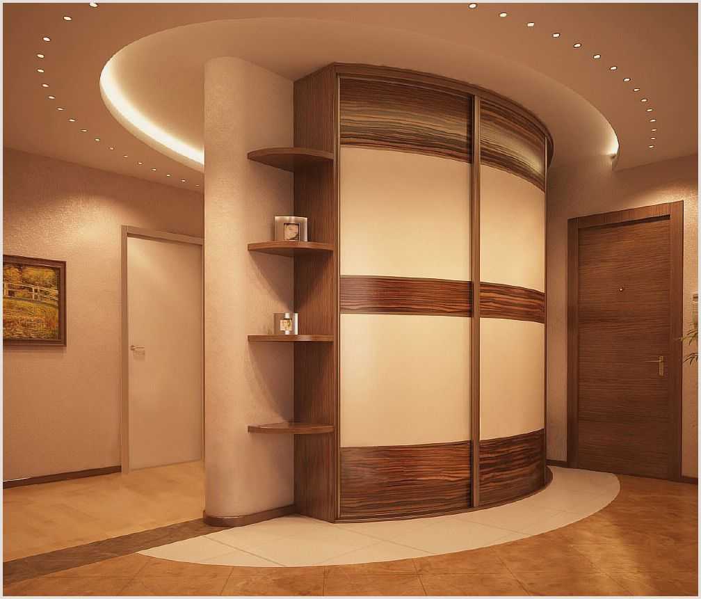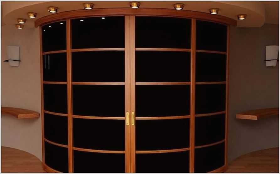 Если говорить о конструкции, то полукруглый шкаф может быть вмонтированным и корпусным. Каждый вид имеет собственные стороны как слабые так и сильные.