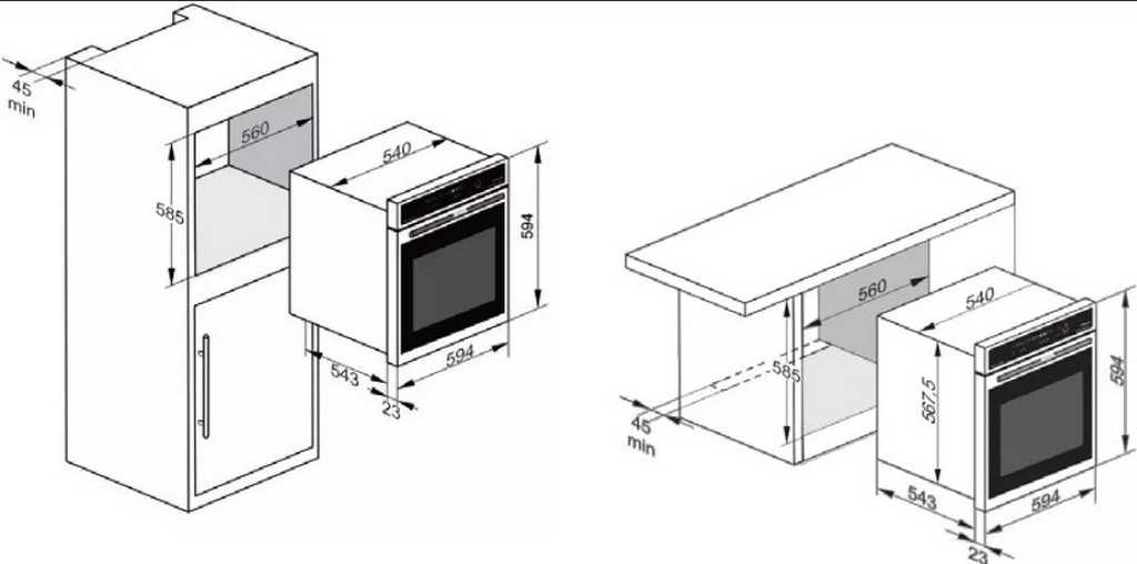 Определив пространство, нужно подумать о подготовке ниши под технику на кухне. Это необходимо сделать еще перед покупкой встраиваемой духовки. Все обычные размеры печей позволяют просто монтировать их в кухню