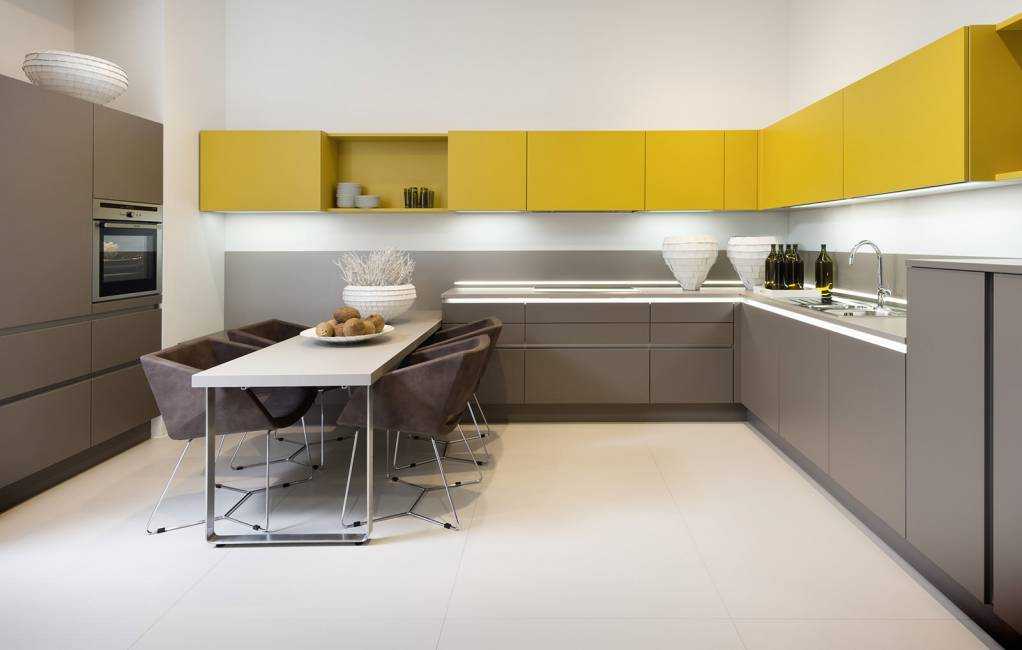 При отсутствии навесных шкафов может возникнуть проблема хранения некоторых необходимых вещей, что можно решить путем увеличения высоты и глубины напольных шкафов, просчитав размеры кухонных фасадов. Но при этом поставить на такую кухню обеденный стол больших размеров может не получиться из-за нехватки места.