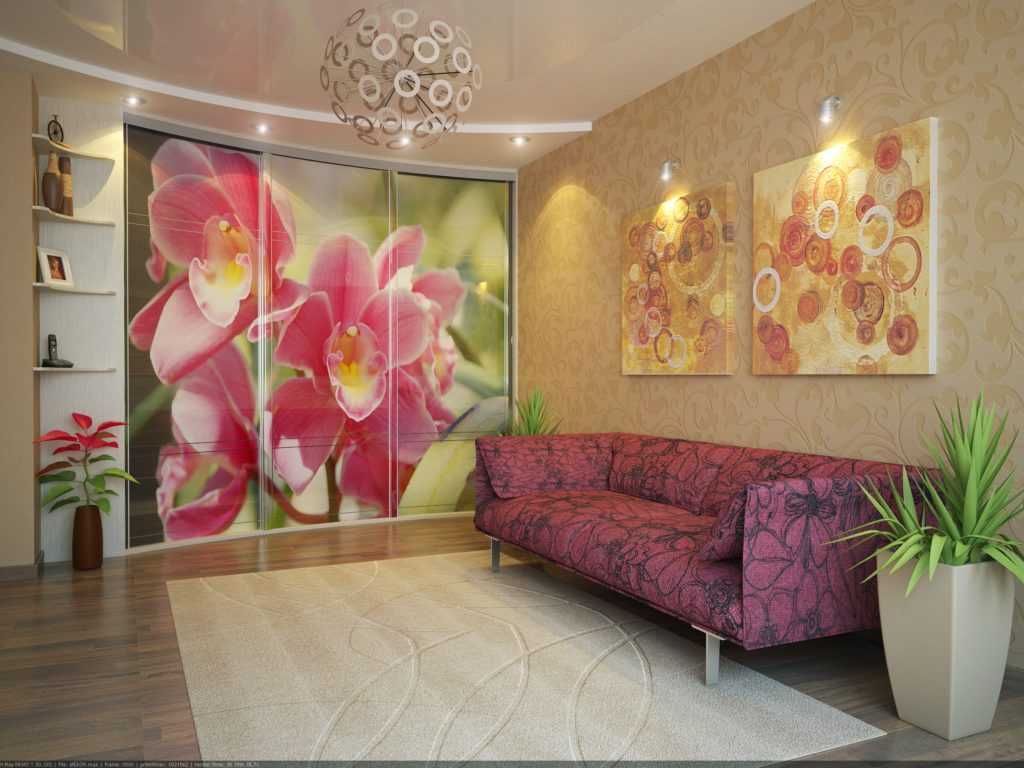 - использование фотопечати — для сюжета выбирают фотографию, которую мастер в увеличенном масштабе переносит на панели наполнения встраиваемого шкафа. Фотографии готовых моделей демонстрируют, как эффектно выглядят в интерьере створки в шкафу с рисунками, нанесенным по технологии фотопечати. Можно выбрать интересные образцы для детской, залы, спальни. Фотопечать станет центральным местом интерьерной композиции;