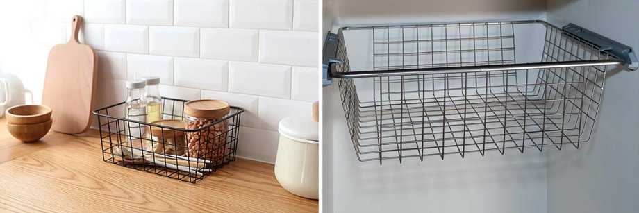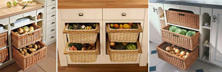 В свою очередь, выдвижные корзины для кухни идеально подходят для хранения лука, картофеля, моркови и других овощей, которые могут долго храниться без холодильника.