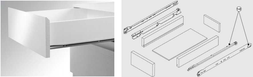 стоимость. Логично предположить, что выдвижные ящики за счет дополнительных деталей обходятся в среднем дороже, чем ящики для традиционных шкафов, не предполагающих усложненные механизмы