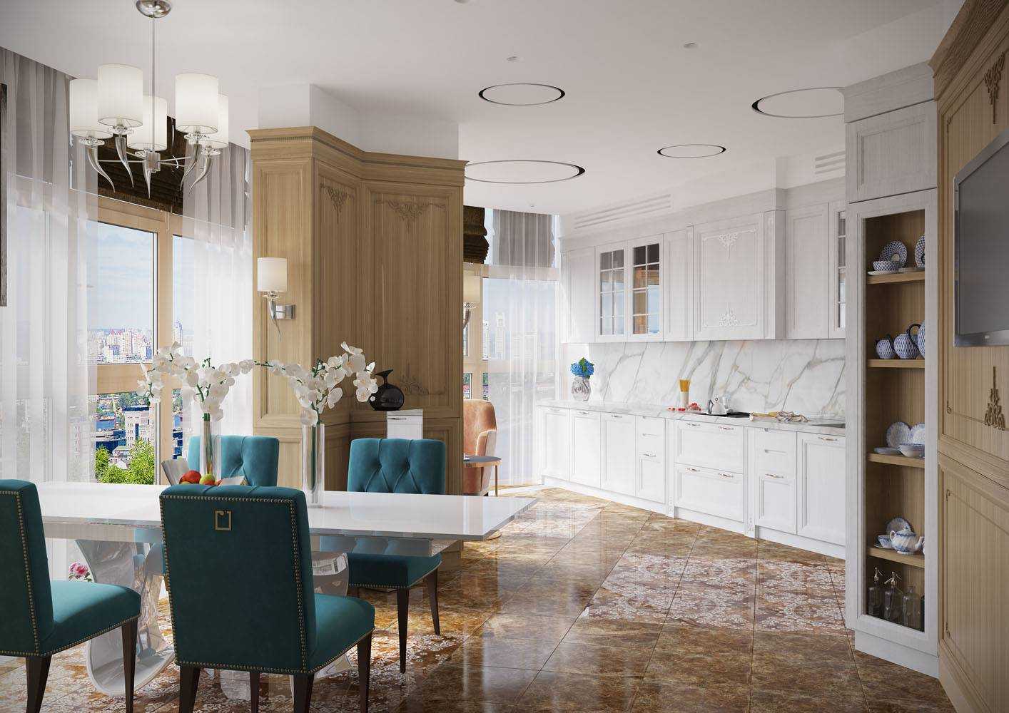Сегодня все чаще классические интерьеры приобретают черты типичной неоклассики, но и этот стиль претерпевает существенные изменения, так как люди стремятся оборудовать кухню с максимальной функциональностью. При этом для облегчения ухода за помещением выбирают наиболее практичные решения, а это означает отказ от лишнего декора и детализации. Именно так традиционная благородная обстановка становится все более простой, оставаясь роскошной в материалах, цветовой гамме, своем характере.
