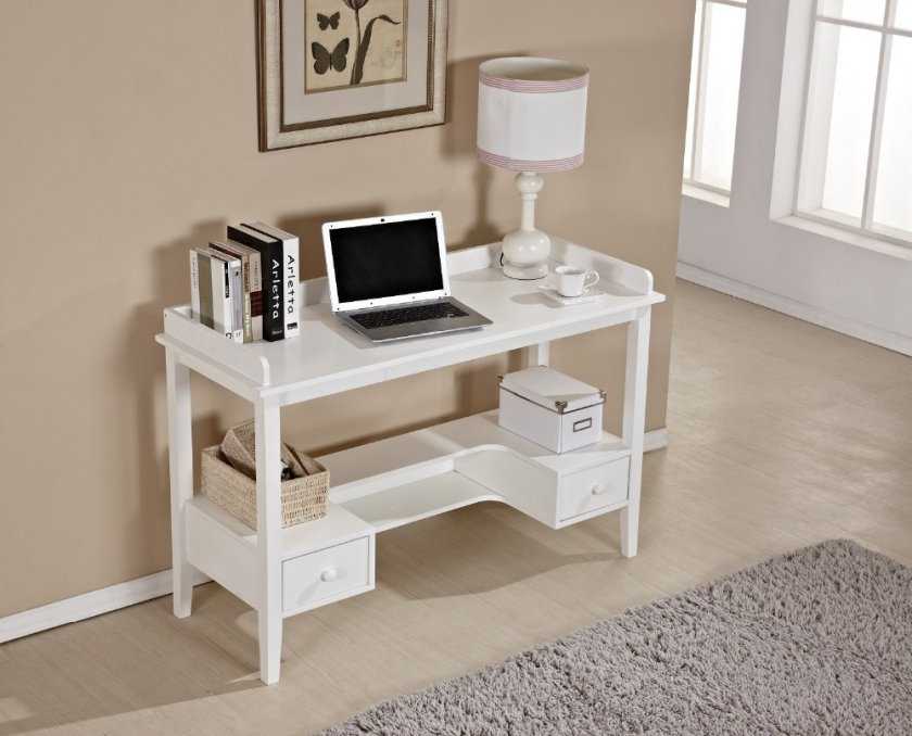 Если же в вашем распоряжении весьма просторная спальня, то можно позволить себе полноценный вариант с шириной столешницы 90 см. Это могут быть совершенно любые модели от столиков бюро с множеством выдвижных ящичков до элегантного дамского столика в стиле «прованс».