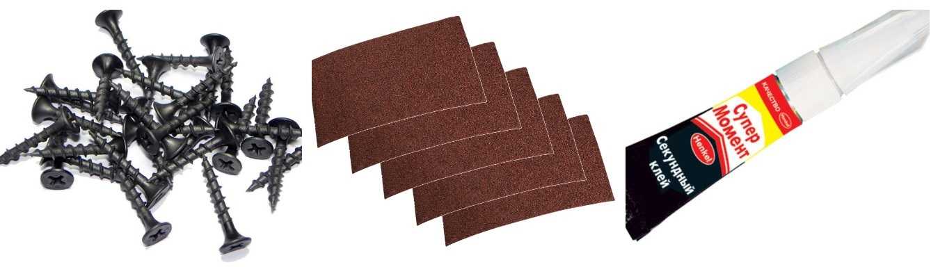 - расходные материалы: наждачная бумага, клей, шурупы, металлические уголки.