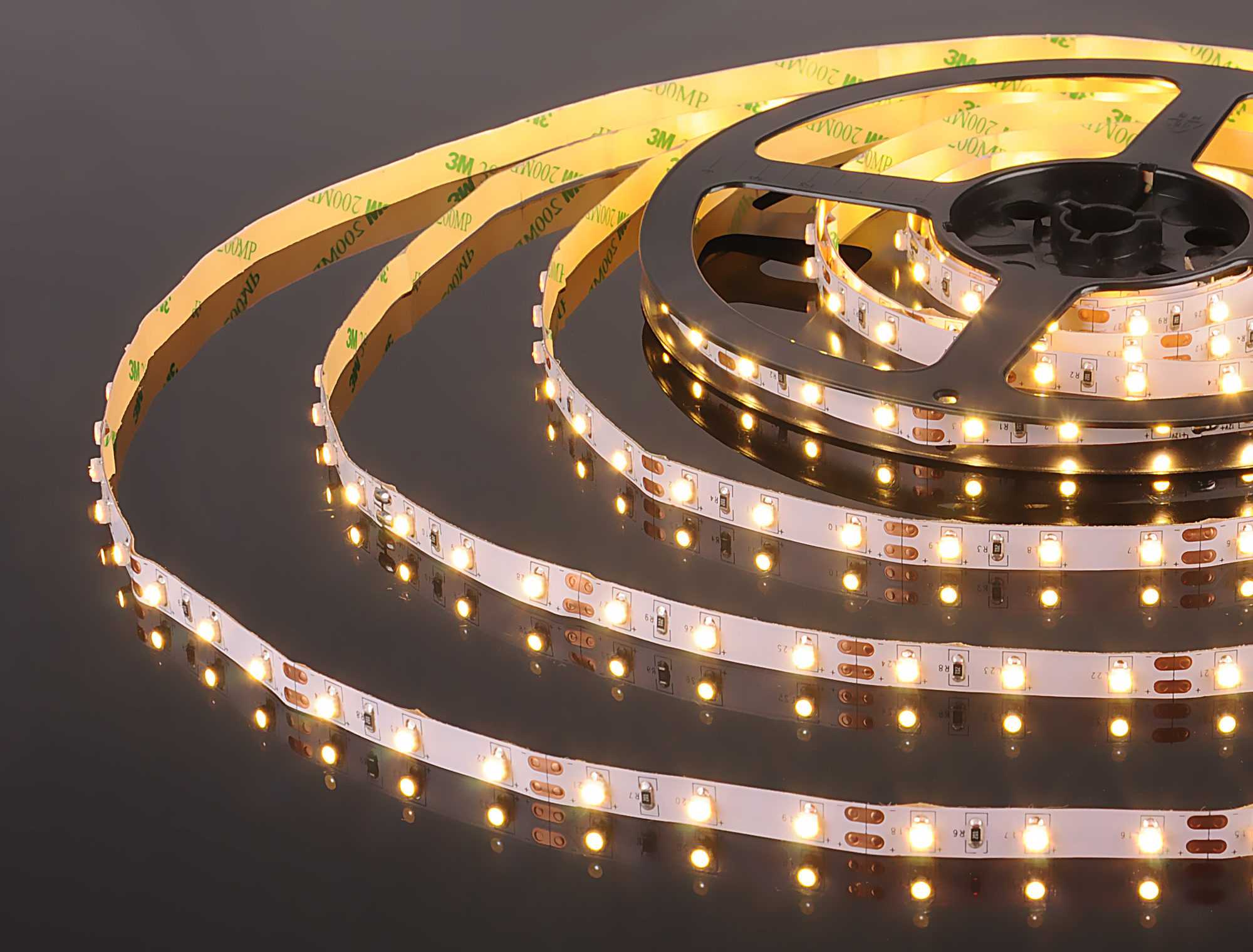 Чем больше светодиодов приходится на один погонный метр, тем ярче свечение от ленты. -