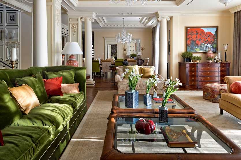 Цветовая гамма кухни — гостиной в стиле «ампир»: