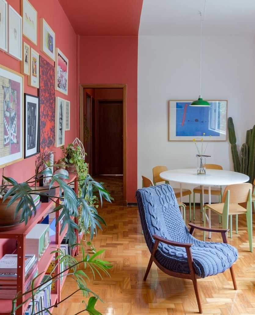 Выложив пол в столовой плиткой, а в гостиной — инженерной доской, вы вполне очевидно разделите комнату на части. Аналогично работает и разная отделка стен: в столовой это может быть краска, а в лаунж-пространстве, к примеру, обои.