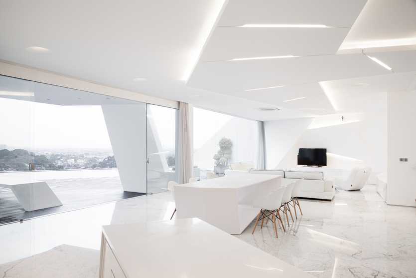На фото – дизайн столовой в футуристичном стиле.