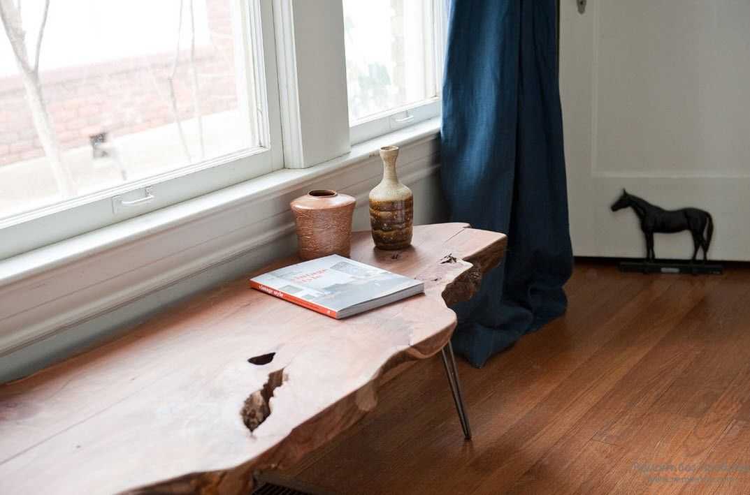 Для классического интерьера, конечно, идеальным вариантом будет деревянный столик, который может иметь различный дизайн: это может быть функциональный модуль с секцией, может напоминать необычную скамейку, а может выглядеть просто, как большой пень.