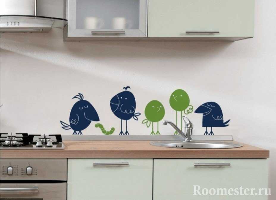 Кухонные наклейки – отличный способ разнообразить интерьер, не прилагая много усилие и материальных затрат. Обычно их используют, когда нужно выделить какую-то часть кухни, сделав на ней яркий акцент, замаскировать повреждения на мебели или стене, обновить интерьер. Большинство современных наклеек смотрятся на поверхности как рисунок, благодаря тому, что не имеют собственного фона.
