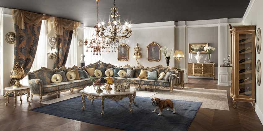 Если помещение достаточно просторное и правильной формы, лучше всего оформить его в светлых тонах с добавлением большого количества позолоты или металла. Такой насыщенный декор будет в данном случае очень уместным.