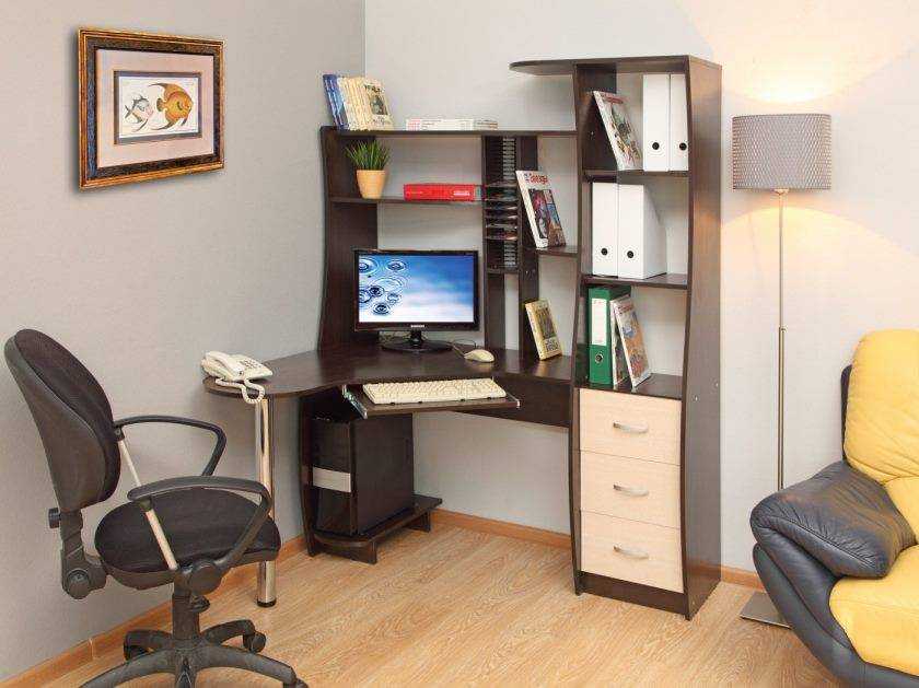 Компьютерный стол, совмещенный со стеллажами, является идеальным вариантом для организации места для работы и учебы в домашних условиях. Большие столы в состоянии заменить отдельный книжный шкаф. Более скромные по размеру столы с полками можно использовать, чтобы хранить рядом с компьютером наиболее необходимые книги и справочники.
