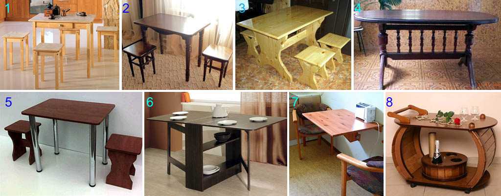 По конструкции существует четыре вида столов для кухни, которые можно изготовить самостоятельно: обычный, откидной, раздвижной и сборный.