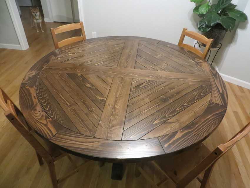Обычный стол может быть овальной, прямоугольной или круглой формы. Это самый простой вариант с точки зрения конструкции, но технология его изготовления не такая уж простая. Есть много нюансов, связанных с умением пользоваться столярными инструментами. Необходимо не только правильно собрать изделие, но и красиво его декорировать. Ответственным этапом является покрытие лаком.