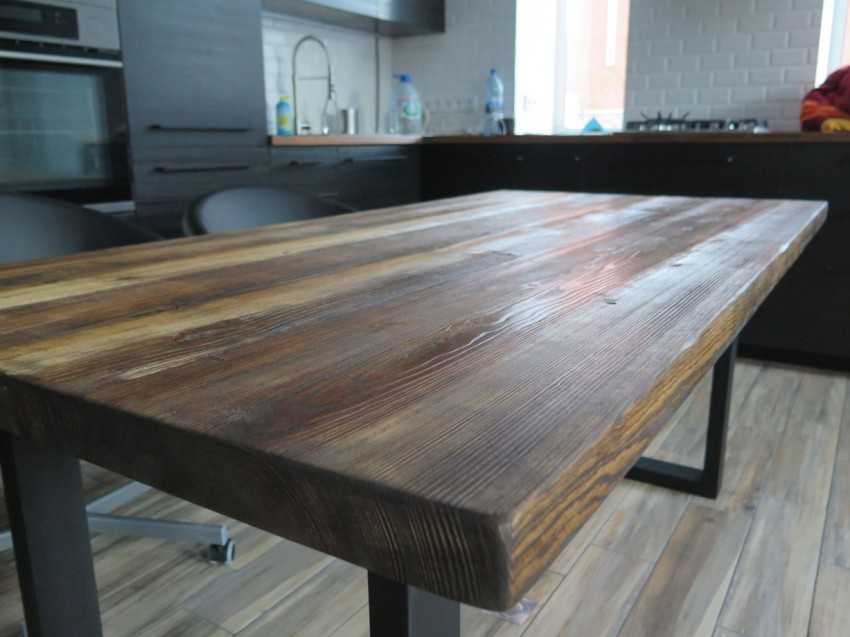 Кухонный стол, во-первых, делается из пород дерева или материалов, мало или совсем не подверженных усадке при усыхании: дуба, граба, венге, ЛДСП, МДФ. Обычная деловая древесина в кухонной атмосфере с ее скачками температуры, влажности и парами органики в воздухе лет через 5-7 начинает коробиться и трескаться даже пропитанная и под лаком. С другой стороны, размеры кухонного стола невелики. Отсюда следуют некоторые особенности его изготовления, в конечном итоге позволяющие упростить работу.