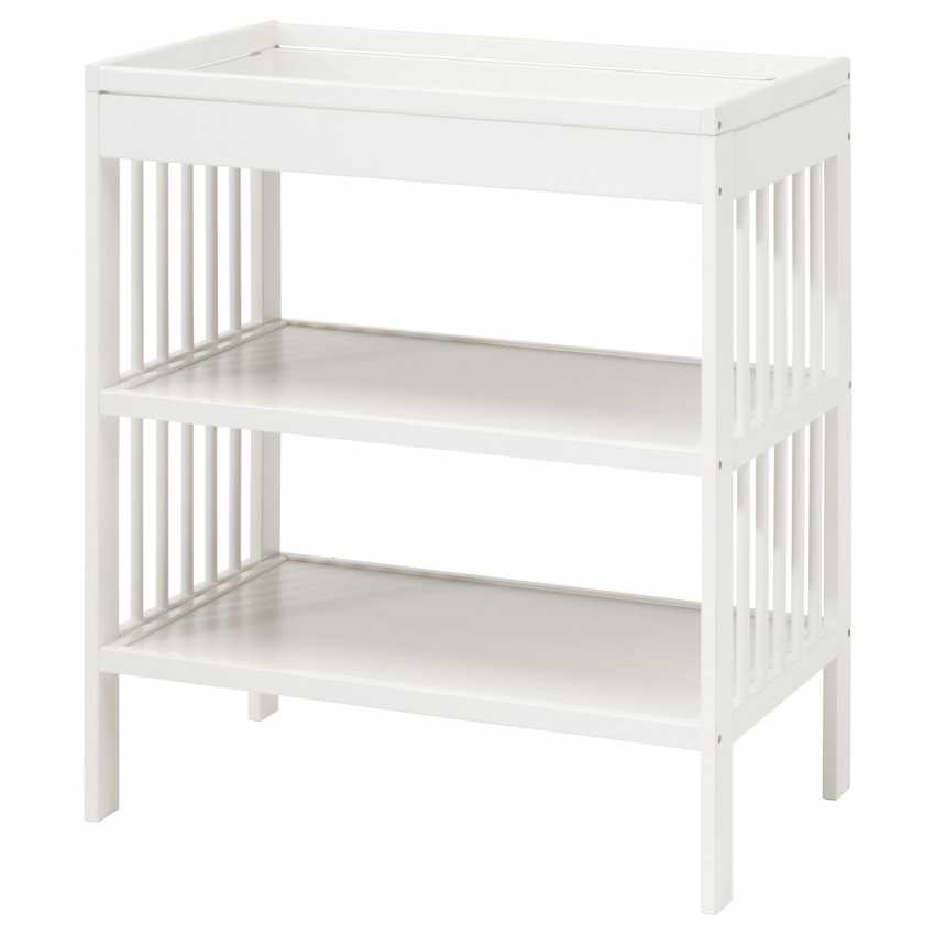 Пеленальный стол-стеллаж «Хенсвик», совмещённый с полочкой, имеет следующие размеры: ширина – 75 см, глубина – 76 см, высота – 161 см. Высота в данном случае означает расположение верхней полки стеллажа, а то время как пеленатор находится на вполне удобной для женщины среднего роста высоте от поверхности пола. Данные размеры пеленальника также рассчитаны на малышей, имеющих рост не более 70 см.