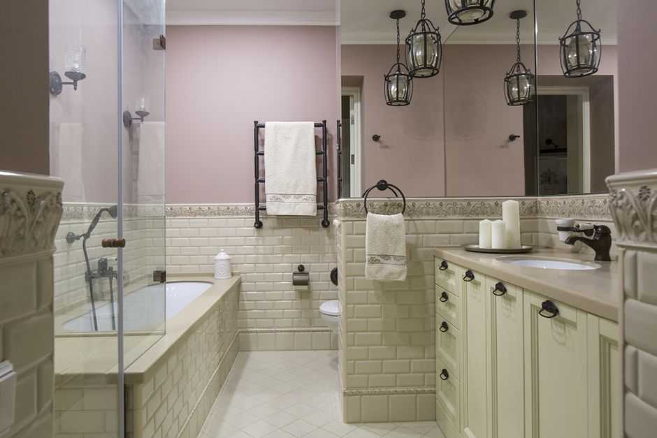 Санузел в американском доме, как правило, оснащен окном, пропускающим достаточное количество света. Чаще всего дом оборудован несколькими туалетами – хозяйским – прямо за спальней и гостевым – при входе. Третий размещают рядом с детской комнатой. Ванная обычно совмещена с туалетом и содержит минимум мебели. Как правило, ограничиваются тумбой под раковиной и подвесным шкафчиком с зеркалом в дверке. В санузле всегда присутствует ванна. При наличии свободного пространства дополнительно может быть установлена душевая кабина, но ванна всегда в приоритете. Ее часто размещают под окном либо в центре комнаты. Зону с унитазом обычно отделяют перегородкой. В качестве отделки пола используют влагостойкий ламинат или плитку. Для стен выбирают окрашивание, обивку панелями. Окно оформляют легкой шторой.