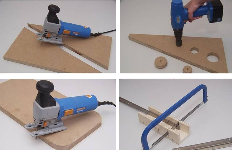 - Для изготовления столешницы с помощью электрического лобзика распилить выбранный материал, придавая ему нужную форму.