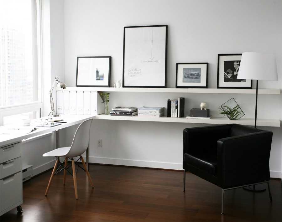В данном варианте хорошо использовать дополнительные полочки, которые крепятся на стене над столом. Подвесные полки сэкономят пространство и обеспечат вам вместительные места для хранения вещей. Полки могут быть закрытыми и открытыми, в зависимости от стиля вашего интерьера.