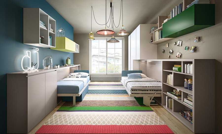 Красивые, стильные кровати-трансформеры в комнате подростков на двоих