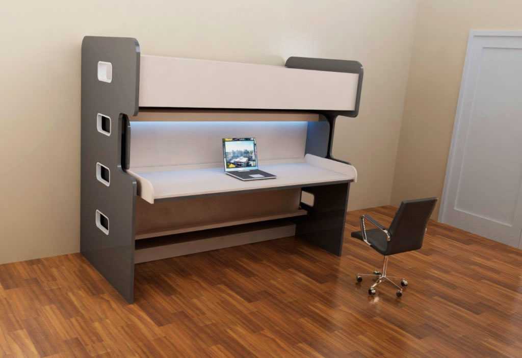 Красивый, стильный, современный трансформер кровать-стол в комнате подростка