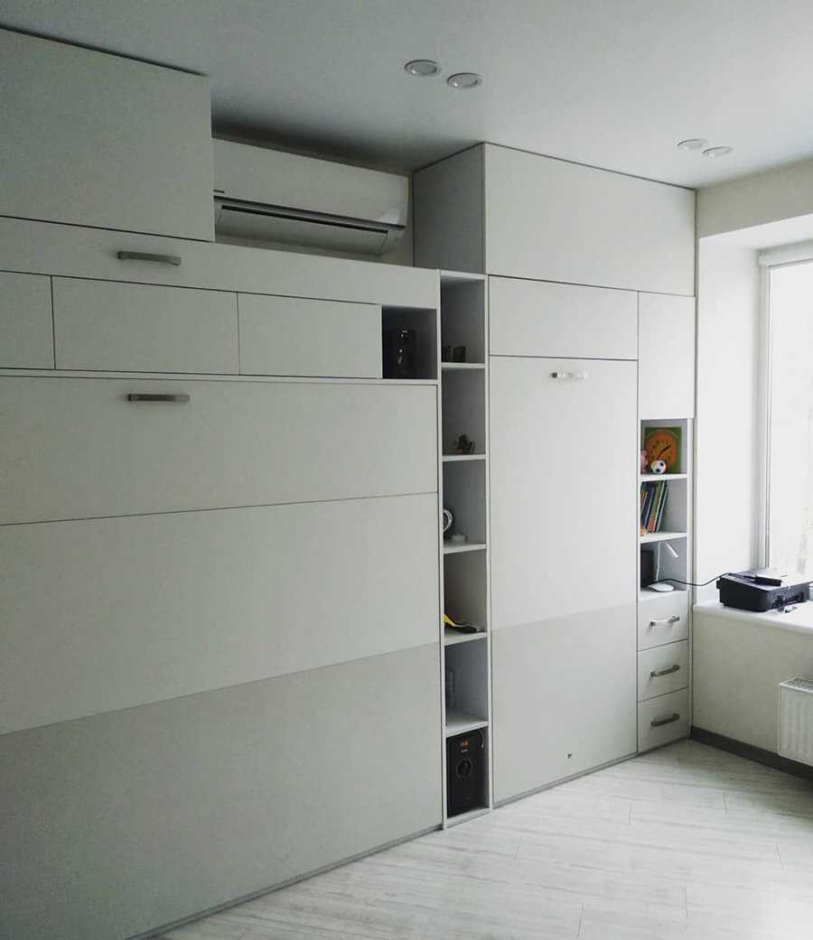 Красивый, стильный трансформер-шкаф-кровать в светлой комнате подростка