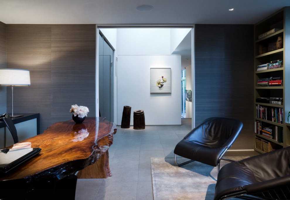 Шикарный рабочий стол из массива дерева в кабинете стиля модерн