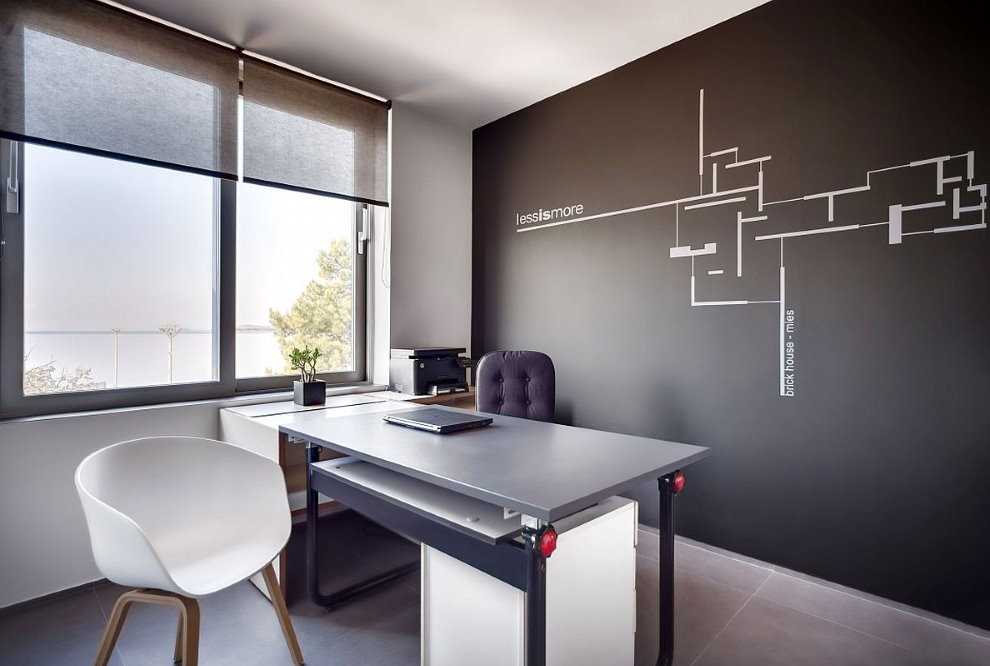 Столы в стиле минимализм подразумевают отсутствие лишних деталей, лаконичность без обтекаемых форм и кричащих цветов. Толстую столешницу при отсутствии ножек можно крепить к стене на любую удобную высоту. Гладкая ровная поверхность, прямые углы придадут кабинету современный гармоничный облик урбанистической направленности.