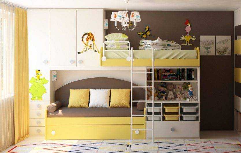 Как и в оформлении детской комнаты для одного ребенка, следует помнить о зонировании пространства: необходимо обустроить спальную, учебную и общую (игровую) зону. Один из самых важных аспектов меблировки при обустройстве спальной зоны – выбор кроватей.