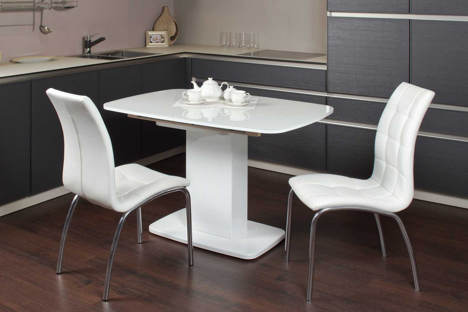 Стеклянные покрытия могут отличаться по типу: матовые, однотонные и прозрачные. Легкие варианты можно перемещать по периметру, а очищать такой стол проще всего – смоченной в уксусе салфеткой. Минусы стеклянной поверхности: разводы и неприятные звуки при соприкосновении с посудой.