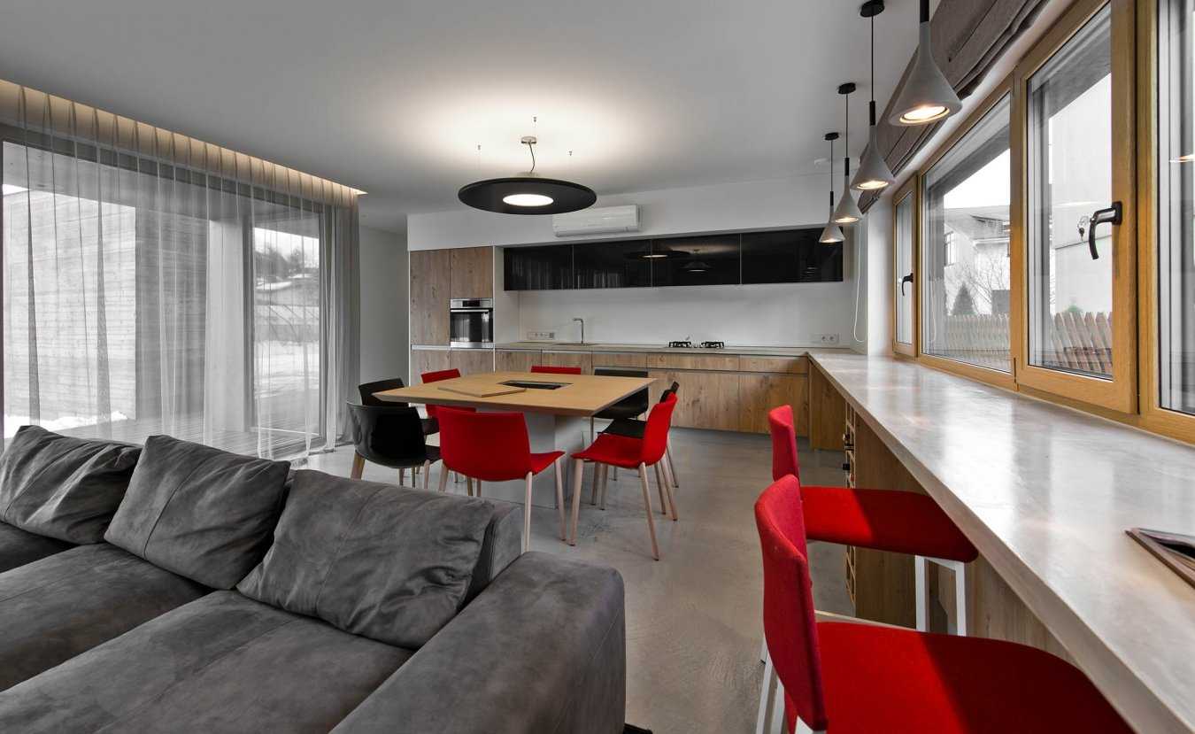 Недостаток скрывается и в невозможности занавешивания окна длинными шторами и занавесками. Такой вариант будет непозволительным, а потому стоит уйти в сторону рулонных штор, жалюзи или коротких шторок.