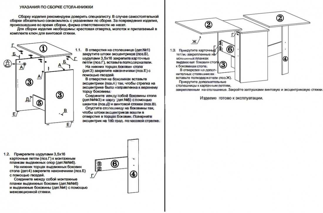 Важным фактором в работе по сборке стола трансформера является строгое придерживание полученной схемы. Она четко рассказывает с наглядными примерами какая деталь как должна быть прикреплена с наглядными примерами, как это должно выглядеть по завершению каждого этапа работ.