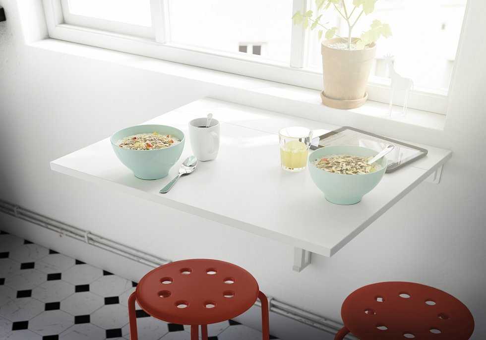 - Продумайте место расположения столика. На кухне с маленькой площадью подходящим местом для столешницы станет ниша под окном над батареей. Также установить ее можно вместо подоконника.