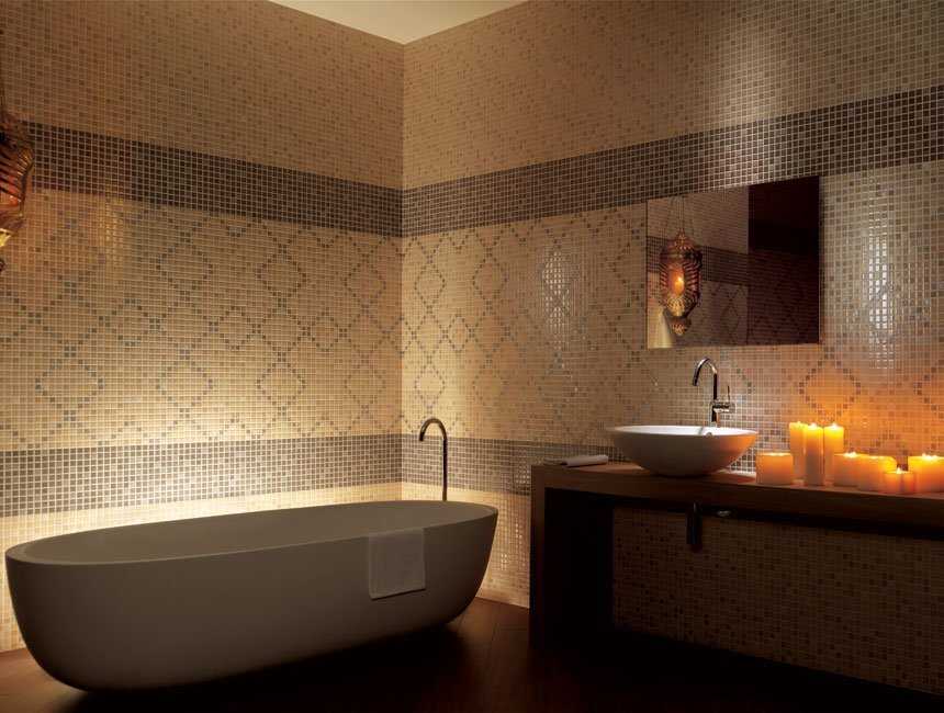 Мозаика имеет преимущество перед традиционной кафельной облицовкой ванной комнаты не только в возможностях художественного оформления. Она превосходит кафельную плитку по эксплуатационным характеристикам, которые выражаются: