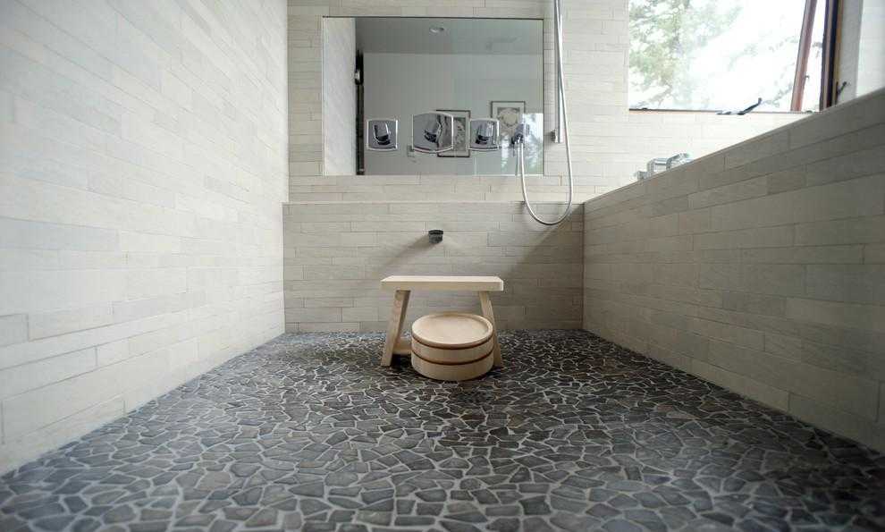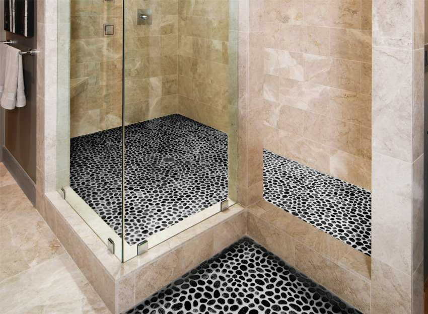 Мозаика для пола выбирается исходя из того, что она должна быть абсолютно безопасной и не иметь острых краев.