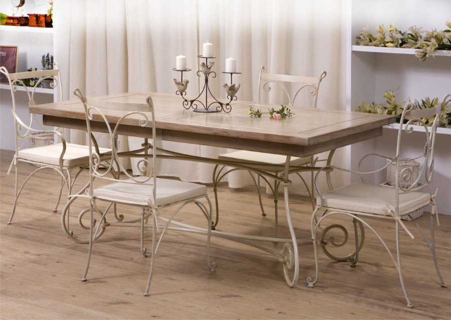 Раздвижной стол в стиле прованса с деревянной столешницей на каркасе с кованными элементами