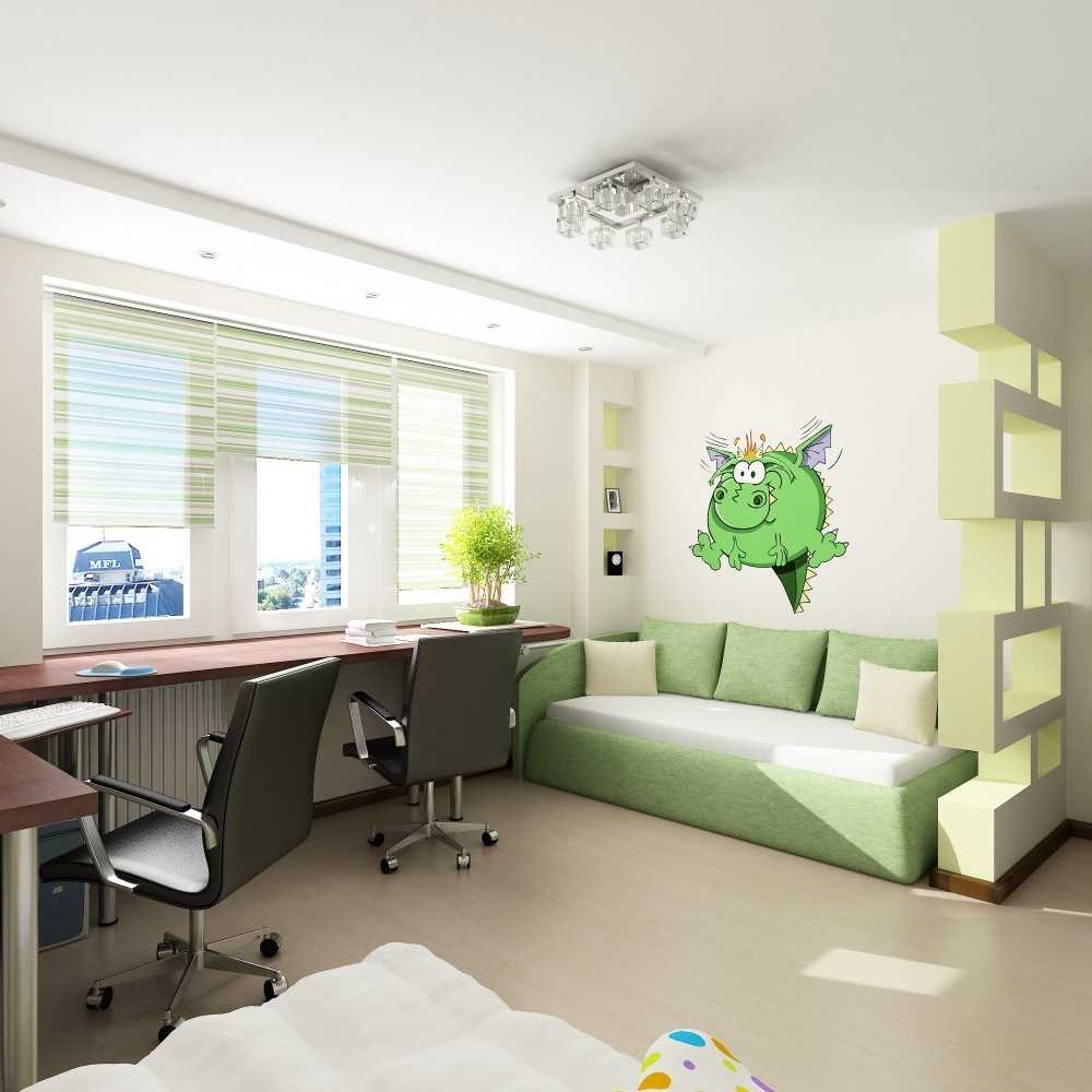 Если позволяет высота, можно убирать подоконник и вместо нее встраивать столешницу, увеличивая тем самым площадь рабочей поверхности. Расположение стола у окна освобождает больше места для игр и отдыха. Что очень актуально для маленьких комнат.