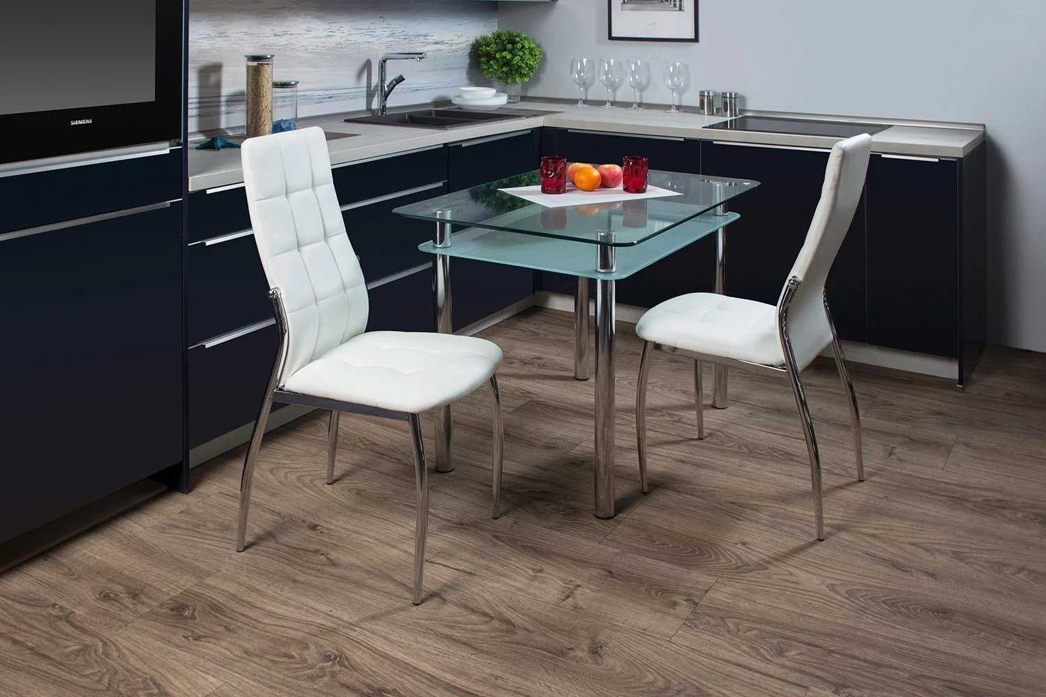 Квадратный стол — отличный вариант для строгой и функциональной кухни, в интерьере которой преобладают прямые и четкие линии.