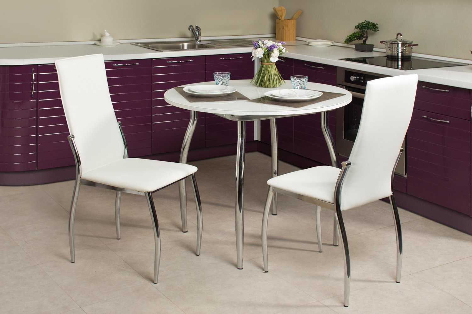 Круглый стол — довольно популярная модель, которая отлично подходит для самых разных интерьеров. Как правило, круглый стол опирается на три ножки, или на одно массивное основание из прочного материала. Выглядит такой стол привлекательно, однако его нельзя вплотную приставить к стене, поэтому для маленькой кухни он не подойдет.