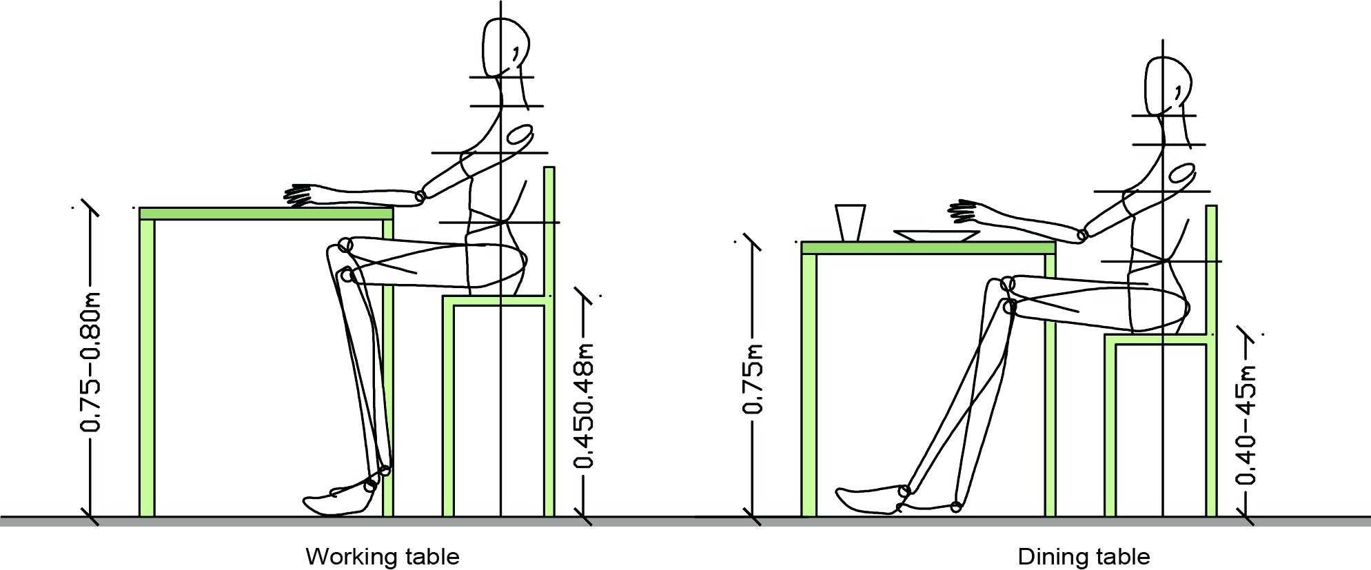 Учитывайте положение человека за столом, чтобы правильно рассчитать размеры мебели.
