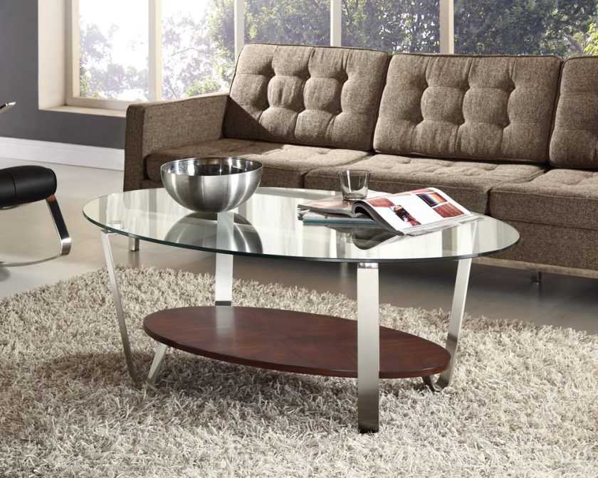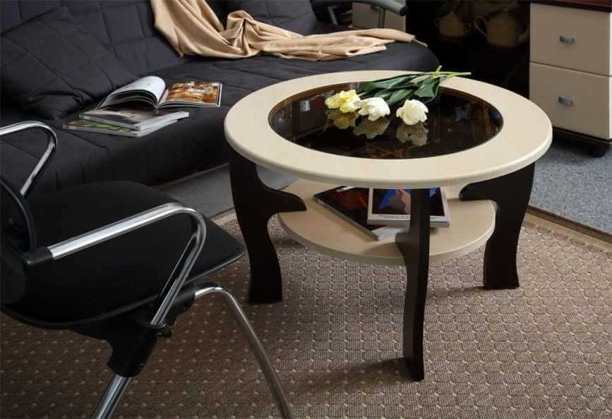 В гостиную большого размера впишется массивный журнальный столик. А вот для малогабаритных помещений подойдут компактные двухъярусные модели.
