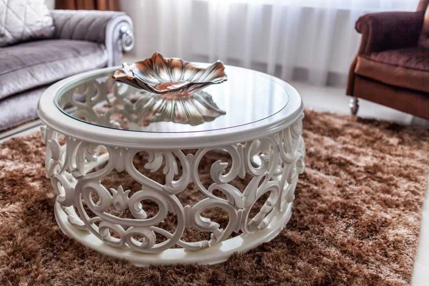 Если комната выдержана в интонациях элегантной классики, установлена мебель, искусно оформленная резными деталями – отличным дополнением к гарнитуру будет невысокий столик «для кофе». Современное увлечение эклектикой в данном случае создаст явный диссонанс, разрушит стиль.