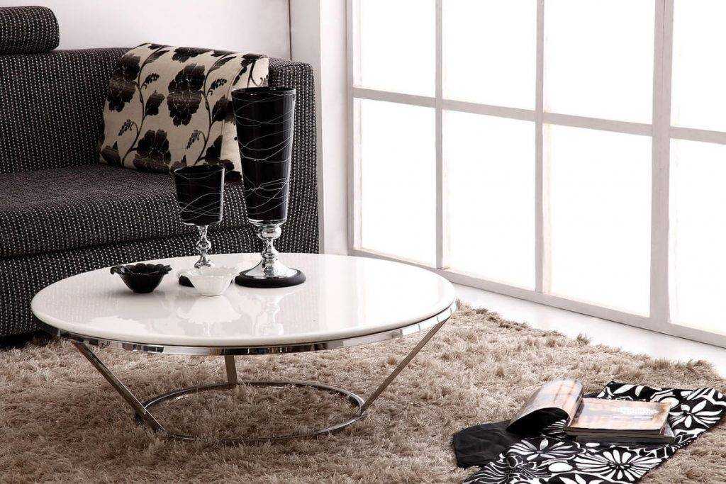 В стиле модерн есть где разгуляться фантазии. Столики могут быть выполнены с любого материала. Основное правило – соблюдение лаконичности форм. Круглый журнальный столик как нельзя лучше впишется в модерн.