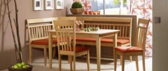 Кухонный уголок. Преимущества и недостатки. Комплектация: столы, стулья и табуреты. Виды уголков. Модели с