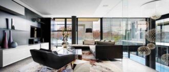 Стиль хай-тек в интерьере гостиной, спальни, кухни и ванной комнаты. Подборка фото интерьеров квартир